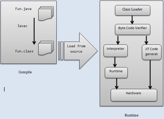 java Fun ( running the program by starting the JVM with the A.class. The JVM translates the bytecode into something the underlying platform understands , and runs your program.